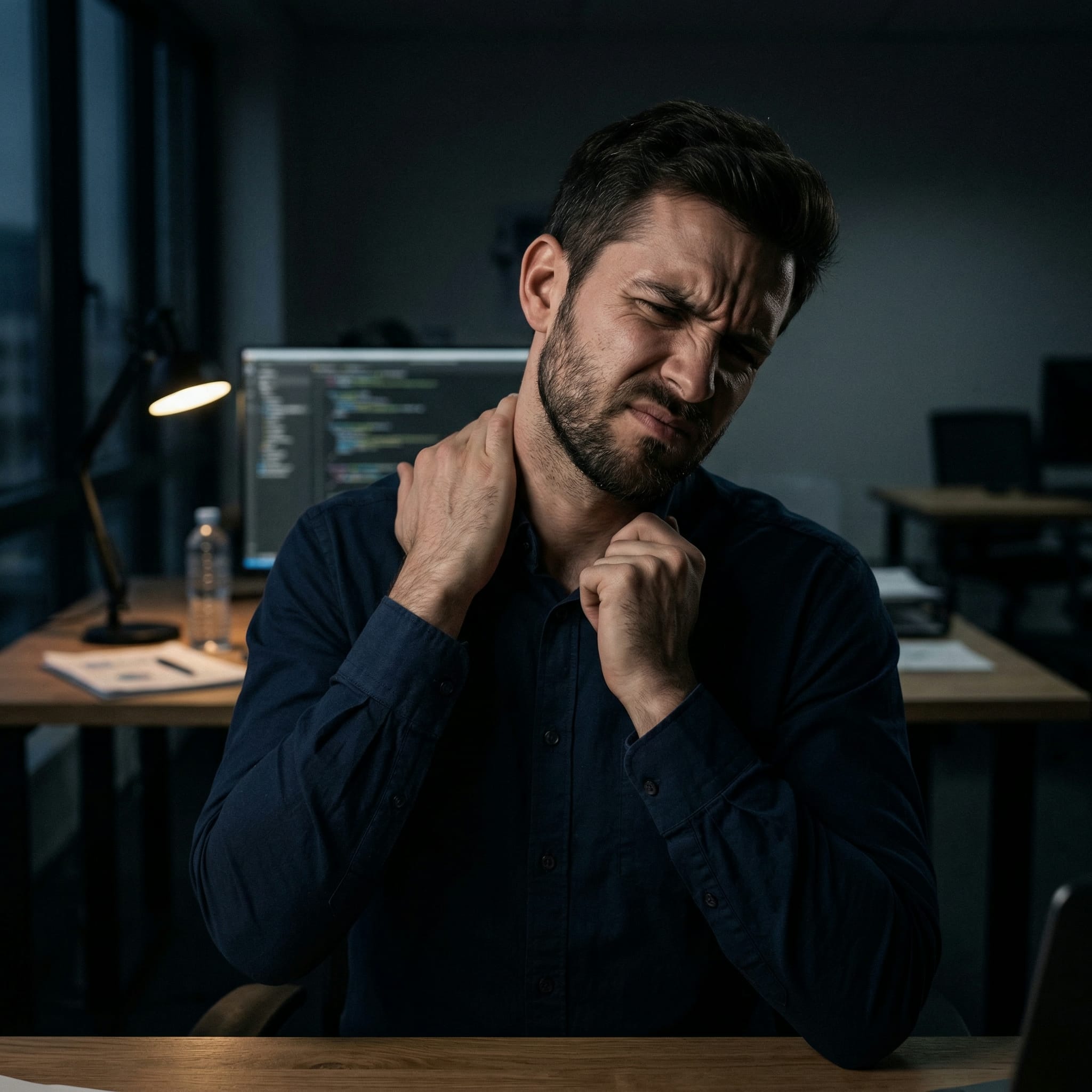 頭皮下方有一層「帽狀腱膜」,連接著前額與後頸。長期盯著螢幕的靜態張力,會讓這層腱膜與頭骨產生嚴重的「物理沾黏」。這種沾黏會直接絞殺頭皮的微血管,導致毛囊缺氧窒息(落髮元凶),並引發強烈的張力型頭痛。